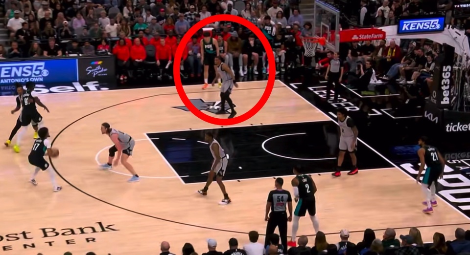 然而,战术安排层面的问题却让这次登场显得格外别扭。马刺队当家球星文班亚马缺阵,圣安东尼奥摆出了一套缺乏高度的五小阵容。按照常理,这本是杨瀚森利用身高优势在低位惩罚对手的最佳时机。斯普利特理应为他布置低位单打战术,或者利用他的身高在禁区内制造杀伤。但现实情况截然相反,教练组的战术板似乎将他固定为了一个底角射手。在数个进攻回合中,杨瀚森只能尴尬地蹲守在底角,远离了他最擅长的油漆区和高位策应区。这种安排不仅浪费了他的身高与传球视野,更让他沦为了进攻端的看客,完全切断了他与持球人的联系。