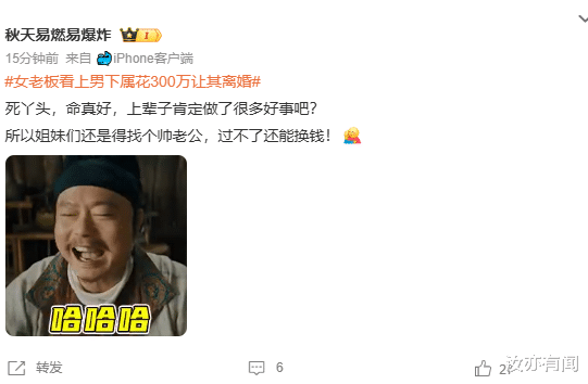 也有人调侃:“原配才是最大赢家”“男员工到底有多大魅力?”