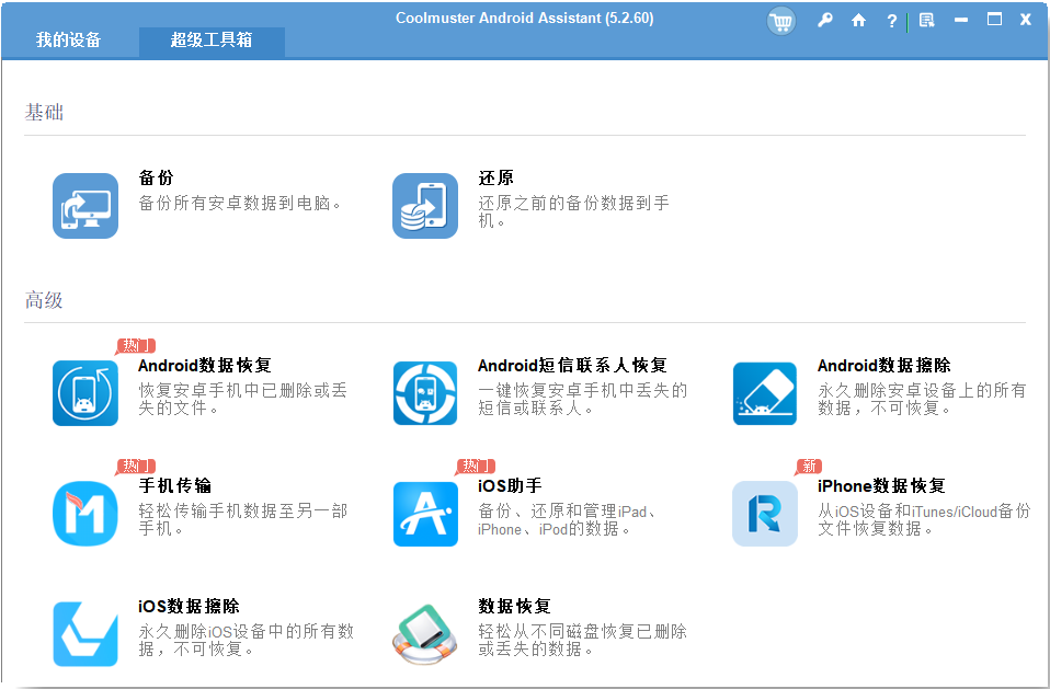 01在电脑上安装并打开Coolmuster Android Assistant 。使用 USB 数据线将Android手机连接到电脑,然后按照提示完成设备识别。