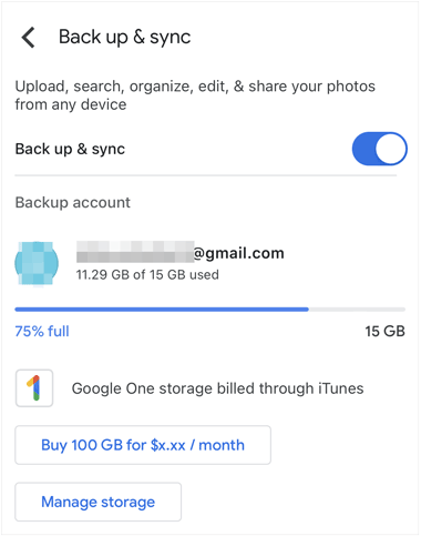 步骤 1. 在您的Android手机上,打开 Google Photos,并确保“备份和同步”功能已激活。