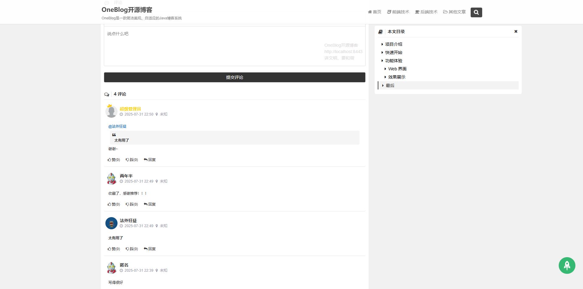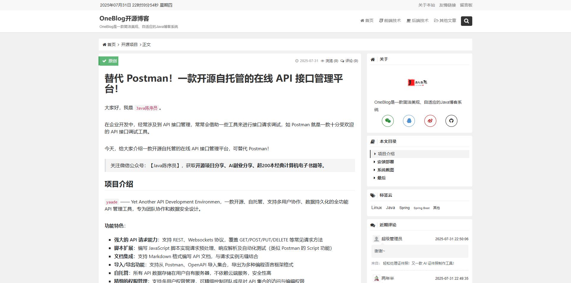 如果你正在寻找一款功能丰富、易于使用的 Java 博客系统,OneBlog 绝对值得一试。快来体验吧~
