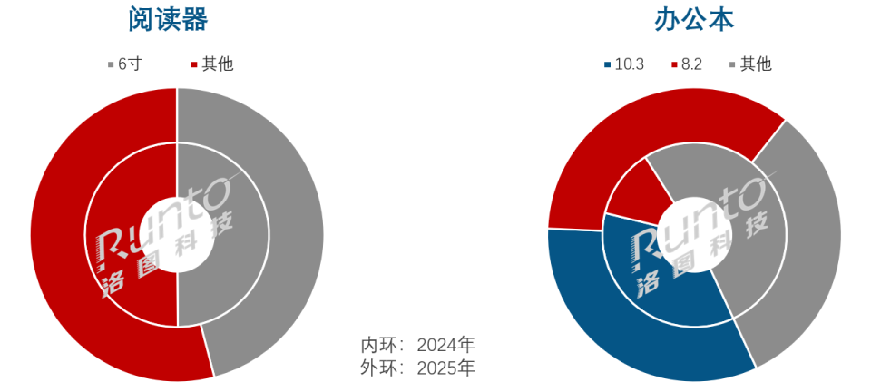 彩色化趋势显著;阅读器“轻小本”、办公本大尺寸化