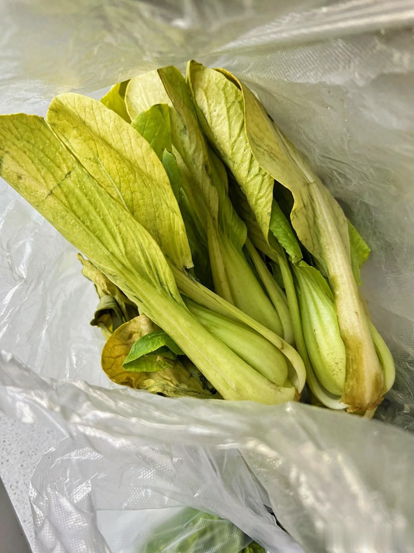 回家收拾菜的时候才越看越不对劲。买的小青菜看着新鲜,底下却藏了不少发黄烂叶,扒掉一半几乎没剩多少。