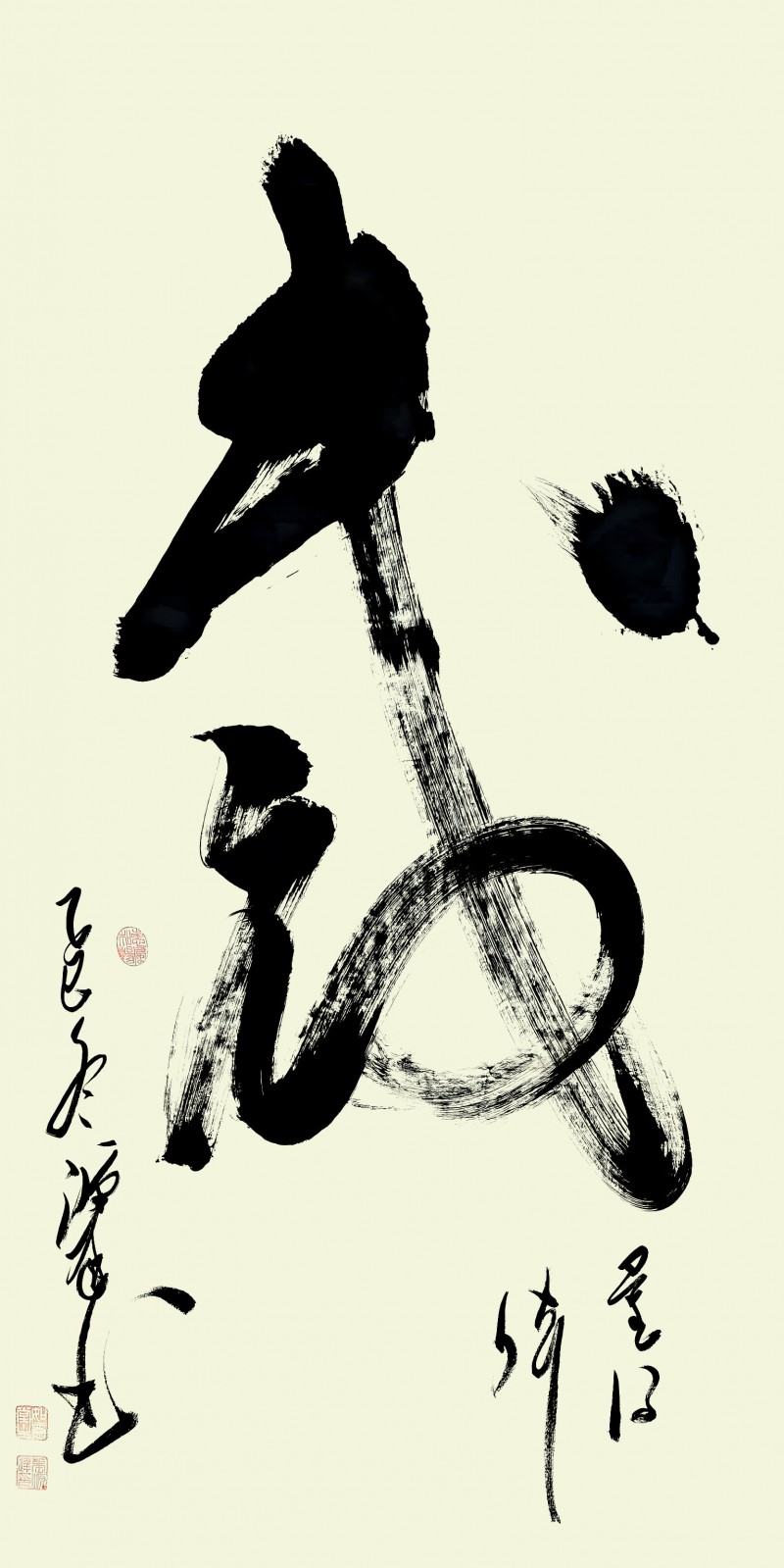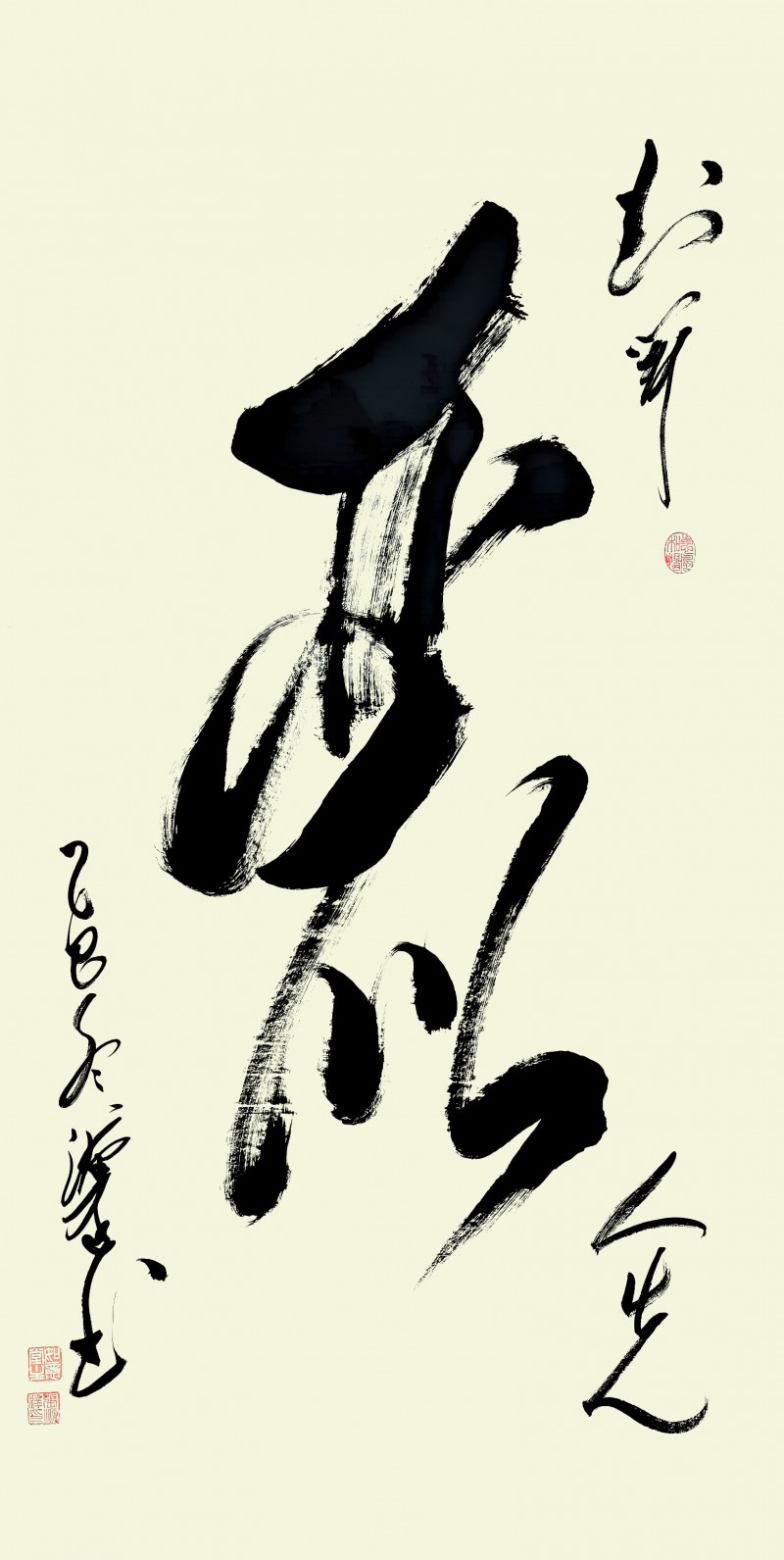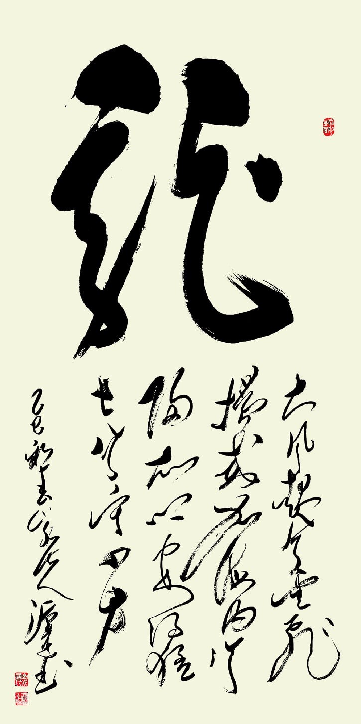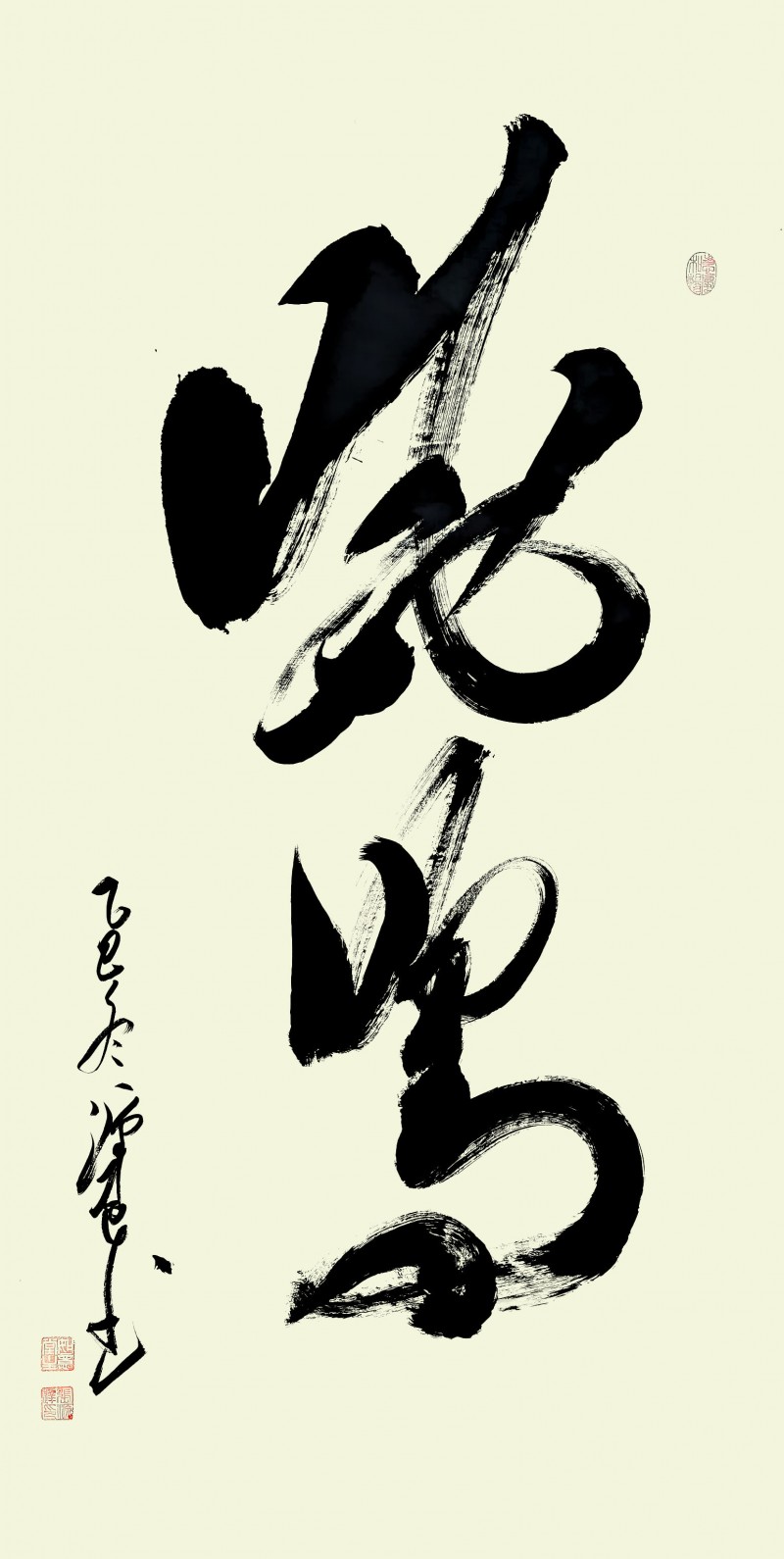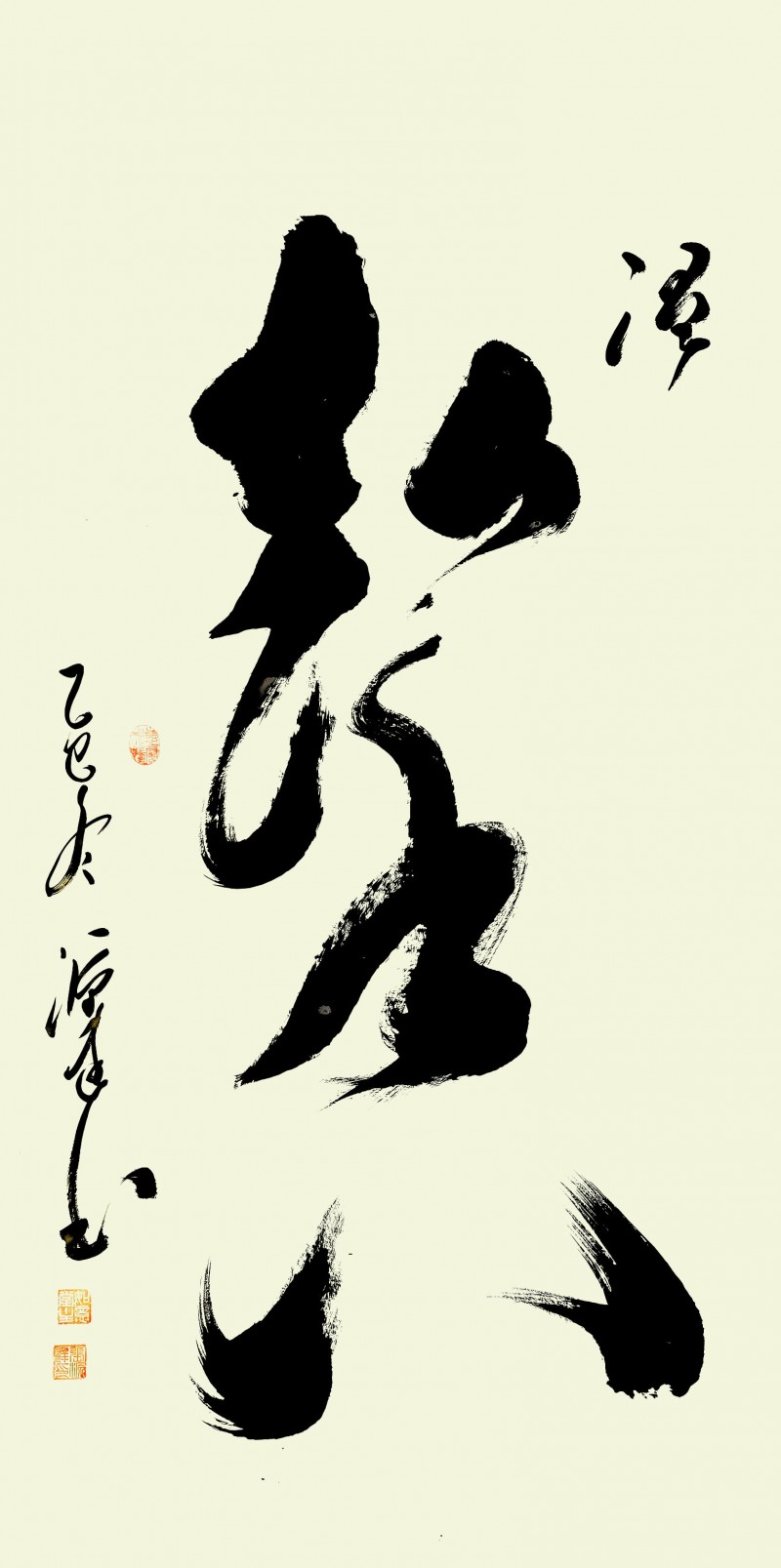 张源达先生作品既承狂草之“笔走龙蛇、行云流水”的酣畅淋漓与情感张力之瞬息万变,又具榜书之“气势磅礴、意境深远”的视觉震撼与空间架构之妙,笔墨纵放间显肃穆,规模宏大中蕴精微。这种独到的艺术语言,不仅拓宽了草书的艺术疆域,也丰富了榜书的表现维度,最终铸就了一种“雄浑、博大、凝重”的文化品格与审美典范,深刻影响着当代书法的创作风貌。