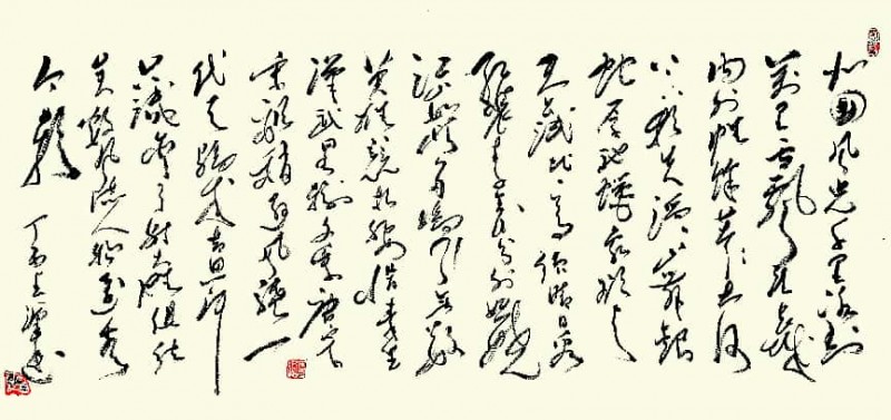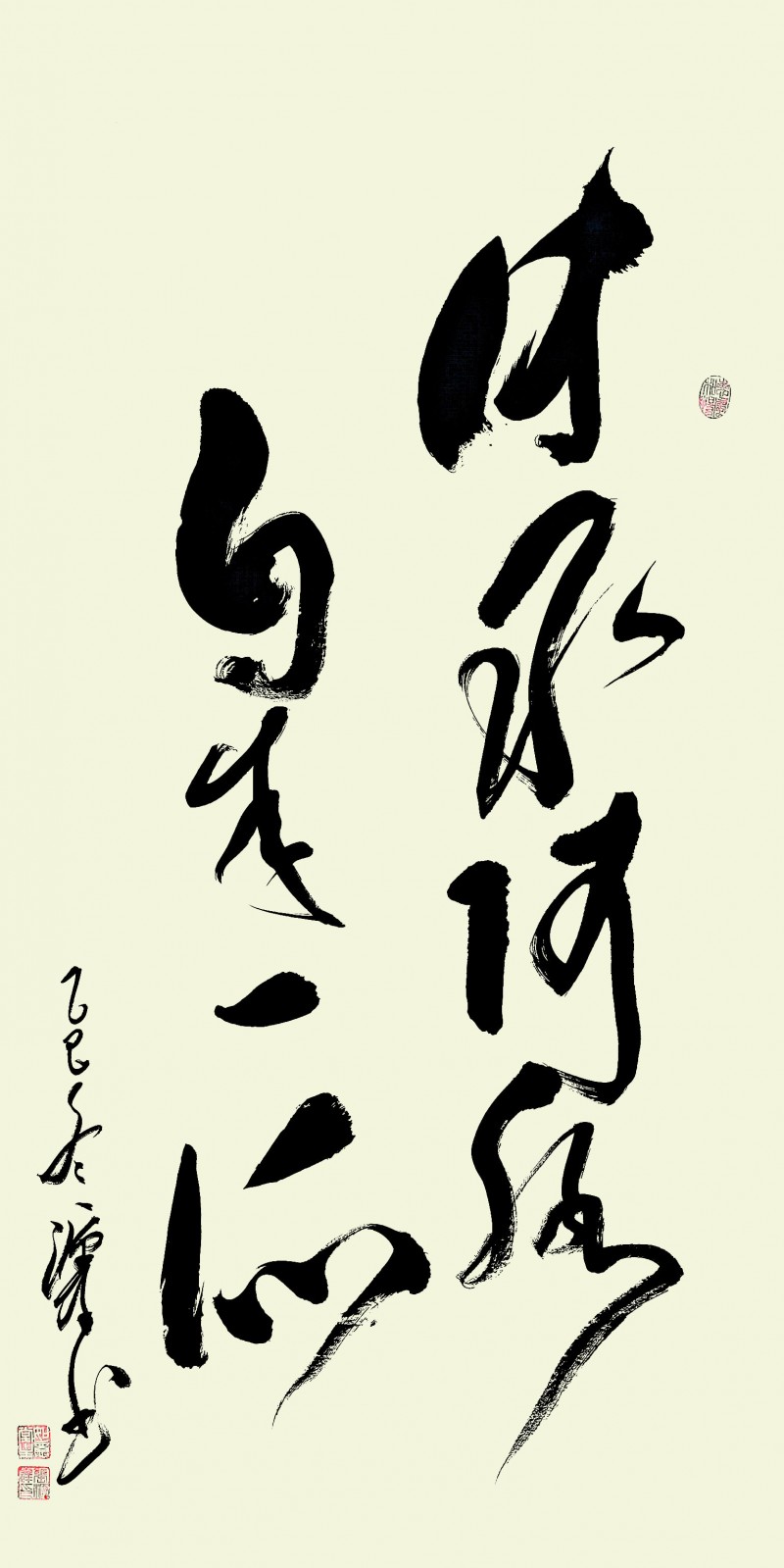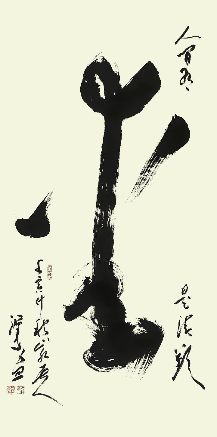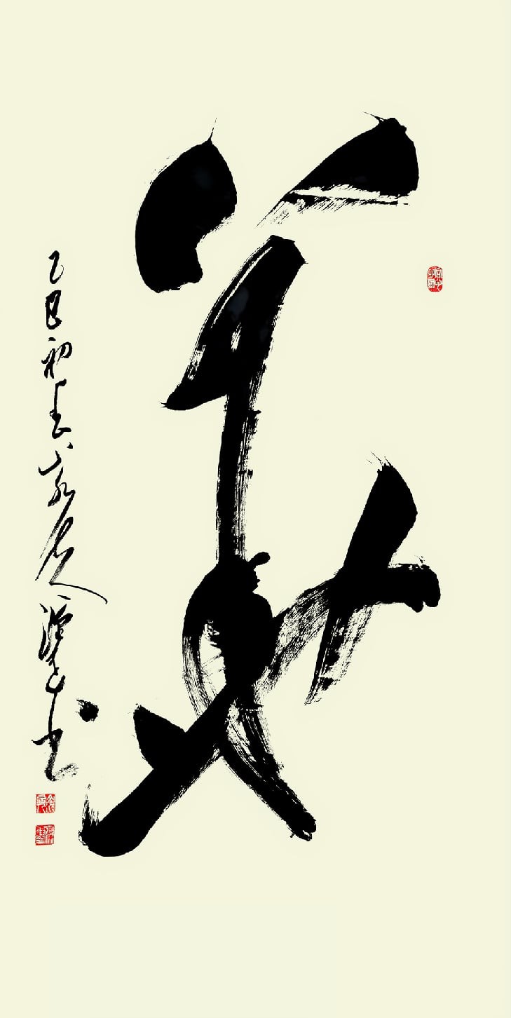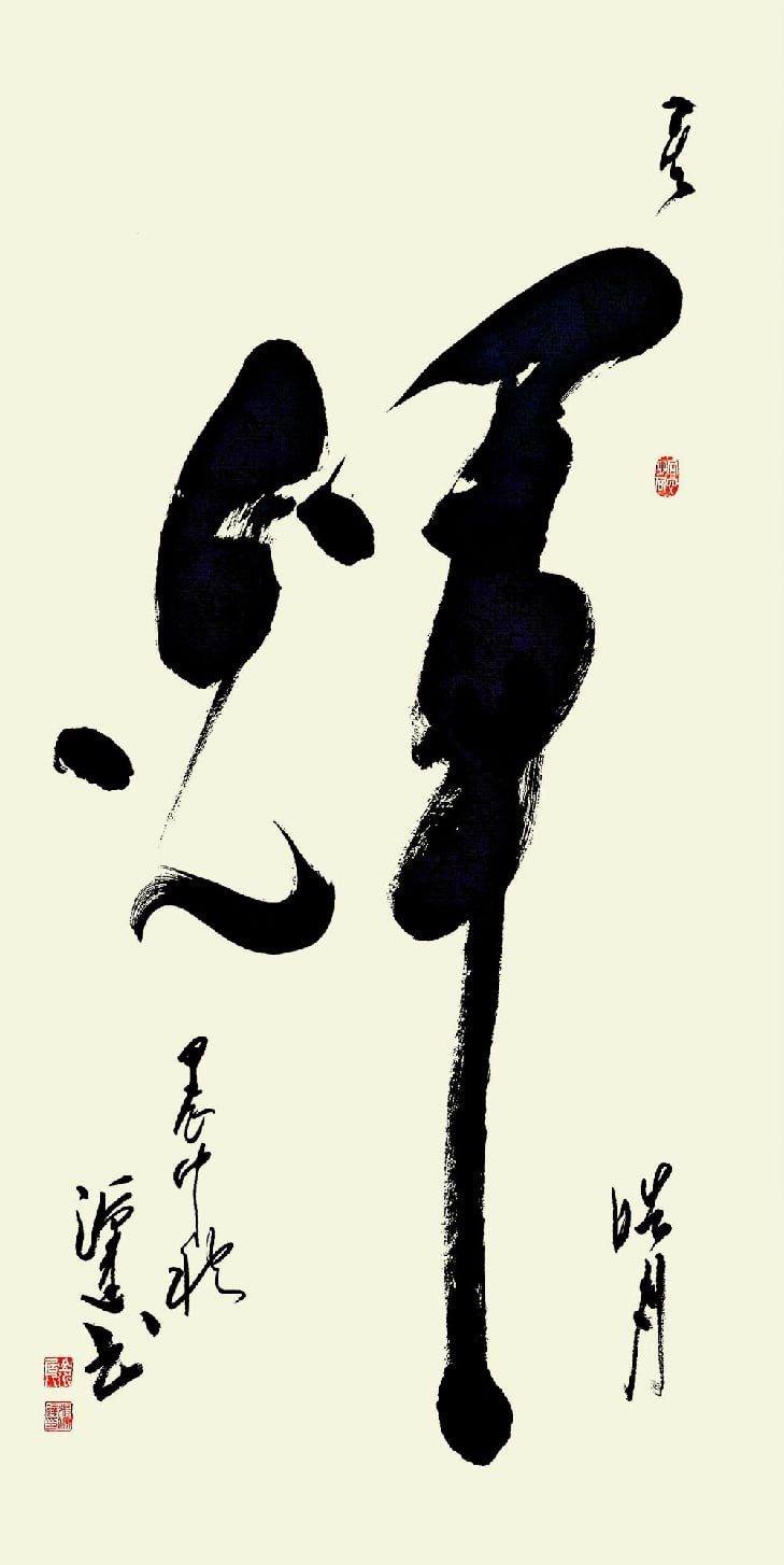 张源达先生作品既承狂草之“笔走龙蛇、行云流水”的酣畅淋漓与情感张力之瞬息万变,又具榜书之“气势磅礴、意境深远”的视觉震撼与空间架构之妙,笔墨纵放间显肃穆,规模宏大中蕴精微。这种独到的艺术语言,不仅拓宽了草书的艺术疆域,也丰富了榜书的表现维度,最终铸就了一种“雄浑、博大、凝重”的文化品格与审美典范,深刻影响着当代书法的创作风貌。