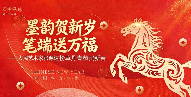 甲辰辞旧岁,丙午迎新春。在2026年新春佳节来临之际,人民艺术家张源达先生挥毫泼墨,以独具神韵的榜草书法与丹青佳作,向海内外各界人士致以最诚挚的新春祝福。