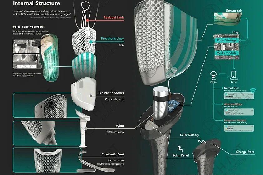 C同学就利用生成设计和仿真工具,提出了机械超材料在假肢领域的运用,提供定制化和符合医学标准的服务,还体现了未来的思考。