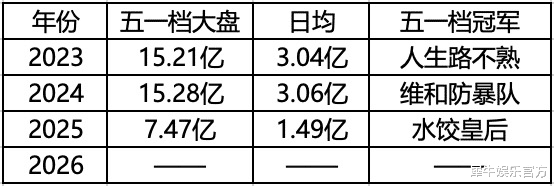 从往年数据来看,五一档还是能够称得上“中坚力量”的,尤其是2023、2024年,大盘累计斩获了15亿+的体量,日均票房能够达到3亿+,这个水准就已经非常出色了。然而2025年却迎来了不小的回撤,回撤幅度超过了50%,这个趋势显然是不好的。