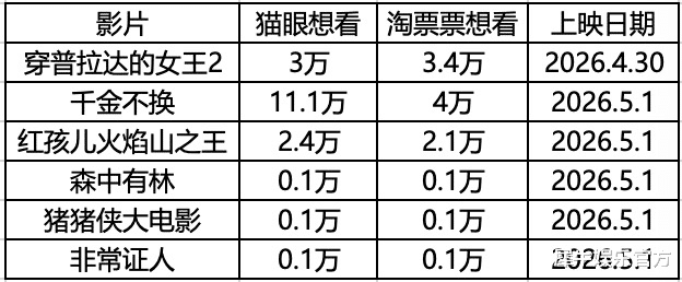 影片应该是五一档唯一的引进片项目,刚刚定档便拿到了不错的热度,目前猫眼、淘票票两大平台均突破3万想看人数。这类影片拥有自己稳固的受众,但在跟国产片的竞争中也很难占据上风,预计会拿到一个几千万级别的体量。