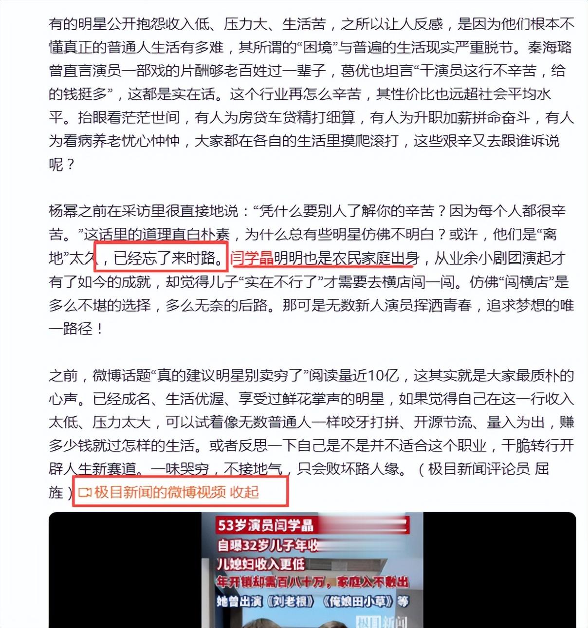 但有的人却截然相反,就像最近深陷“哭穷风波”的闫学晶,同样农村出身,却落到满盘皆输的下场。