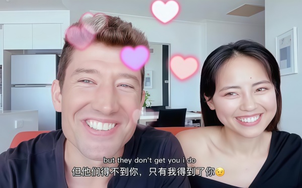 五年来,他们主要通过视频通话进行交流,但最终TJ决定定居中国,留在Claire身边。其实,两个人因文化背景不同而产生的差异从一开始就很明显,但自从相爱之后,这种不匹配就被巧妙地化解成了一场“有趣的中美文化冲突”,实际上成为了生活的调味品。TJ喜欢早上洗澡,Claire则保持中国晚上洗澡的传统;TJ最怕鸡蛋罐头的味道,而Claire则可以喝两大碗鸡蛋罐头粥;不由自主,这些“无奈”的生活被拍成短视频发布,两人瞬间爆红!人们似乎喜欢这种关于中国人和美国人生活的冲突故事……于是,他们注册了抖音账号,最终成为拥有300万粉丝的跨境网红情侣恋爱账号。