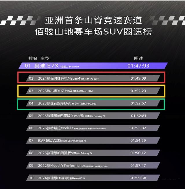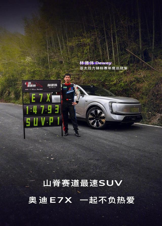 2026年4月7日,奥迪纯电性能SUV——奥迪E7X在浙江新昌佰骏山地赛道完成圈速测试,成绩为1分47秒93,在SUV阵营中表现亮眼,被行业视为近期电动性能车的重要突破。