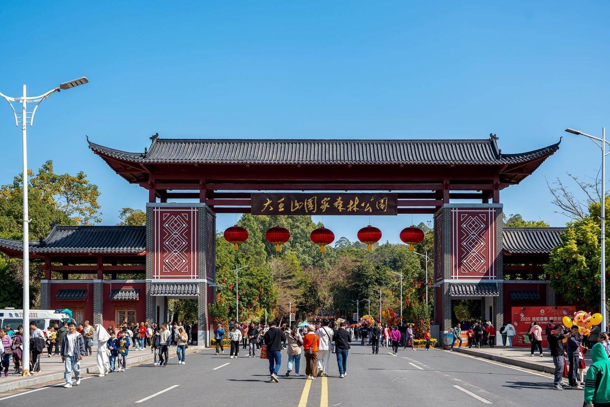 大王山国家森林公园作为郁南县的重要旅游景点,以其优美的自然风光和丰富的文化内涵吸引了大量游客前来游览。大年初一当天,公园共接待游客超2万人次,游客们纷至沓来,行“大运”、祈福。新年公园内新增的多个特色景点,如桃花园自然教育径、大王山篮球场等,也吸引了众多游客观赏拍照。