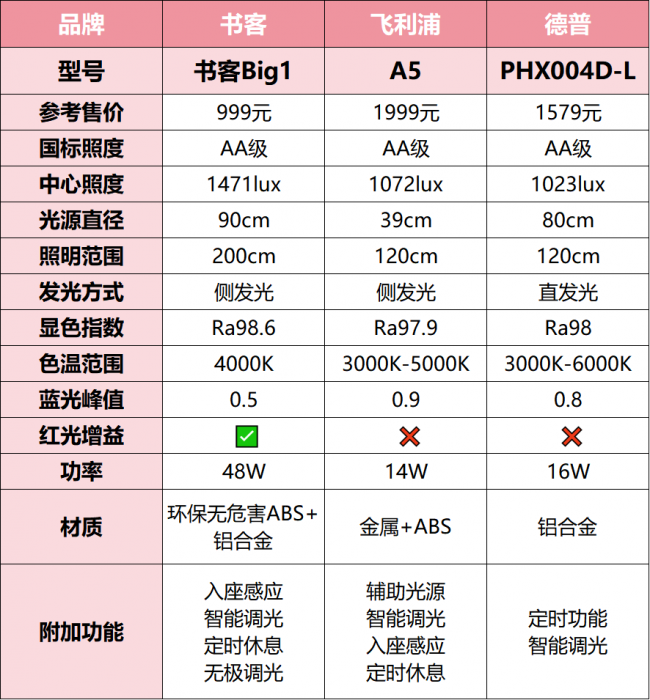 参数看起来都不差,但真正把三款灯放在同一张书桌上、连续使用一段时间后,差异会非常明显。这篇文章,我不打算只停留在品牌印象,而是结合结构设计、实测光学表现以及长期使用逻辑,把书客Big1、德普PHX004D-L、飞利浦A5放在一起,看看它们在“长期学习护眼”这件事上,究竟谁更接近理想状态。