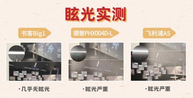 德普PHX004D-L和飞利浦A5存在明显眩光问题,德普的直发光设计虽然亮度充足,但光线过于集中,缺乏有效的二次光学处理,导致在特定角度直视光源时刺眼感强烈,光面书本上也出现了明显的亮斑。