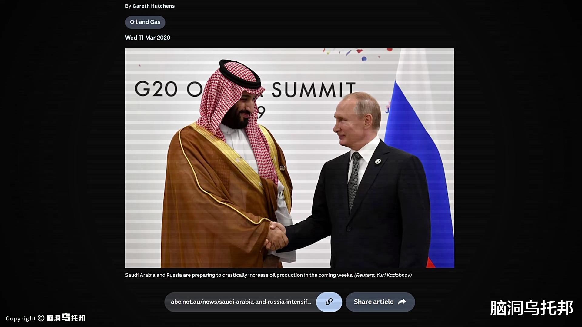 2020年3月6日,欧佩克+减产谈判破裂,俄罗斯拒绝承担减产份额,沙特勃然大怒,当场宣布将原油产量从每天970万桶提升至1230万桶。