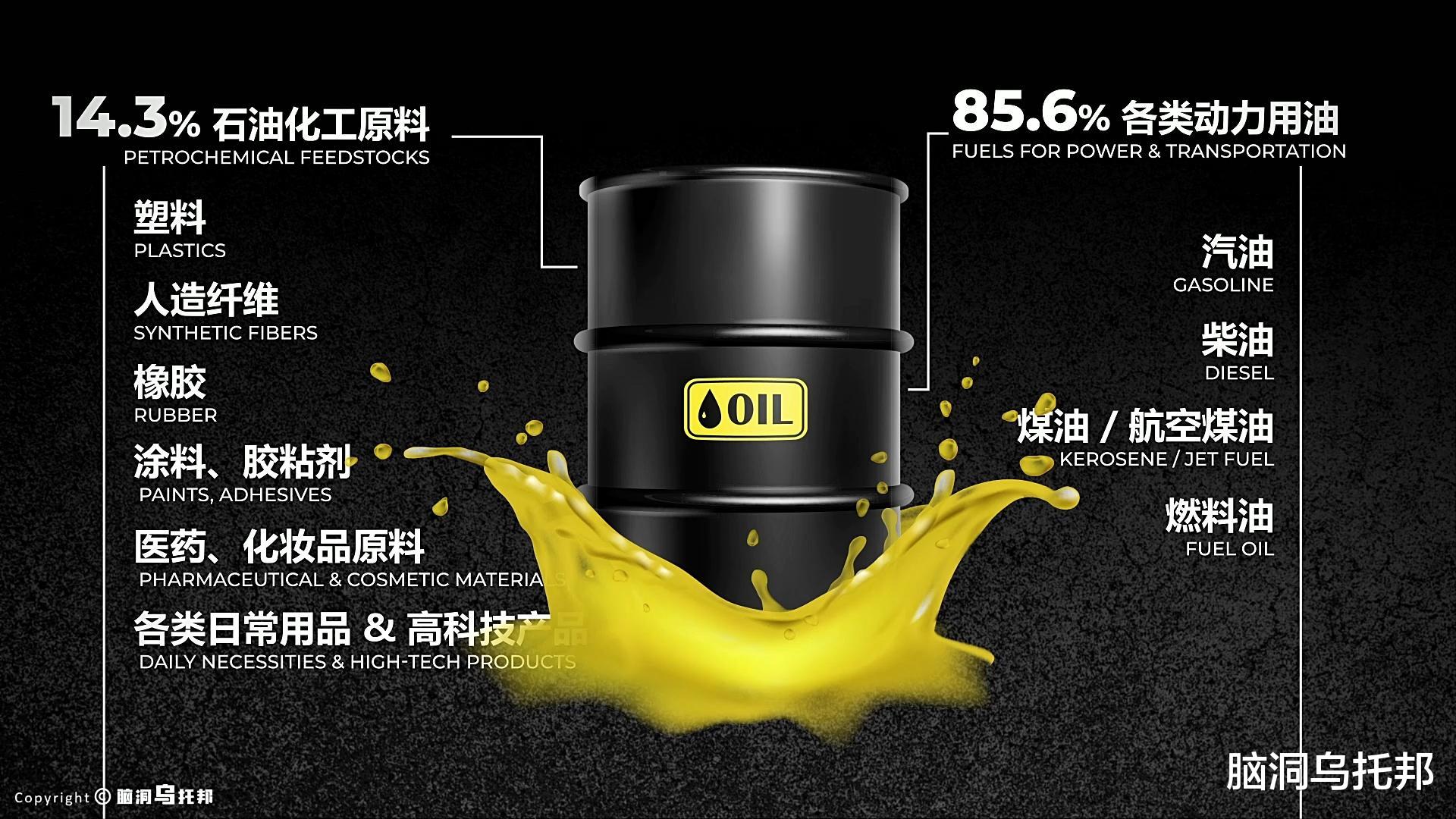 作为目前人类社会最重要的能源材料和战略物资,石油素有「大宗之母」和「工业血液」之称。铁人王进喜有句名言「没有石油,天上飞的,地上跑的,海上行的,都要瘫痪」。