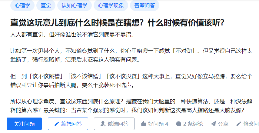 问题:直觉到底什么时候是在瞎想?什么时候有价值该听?到底靠不靠谱?如何判断是高人指路还是大脑发癫?