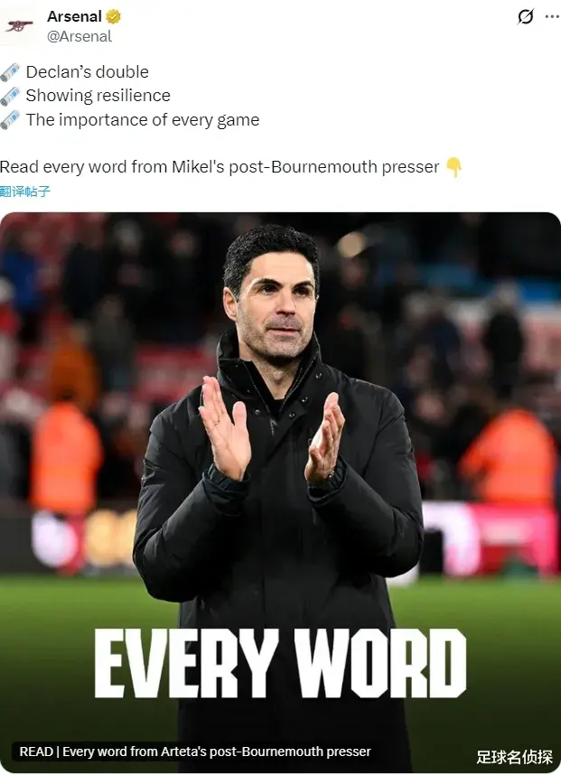 阿尔特塔出席了赛后新闻发布会,我们来看看阿森纳主帅的言论。