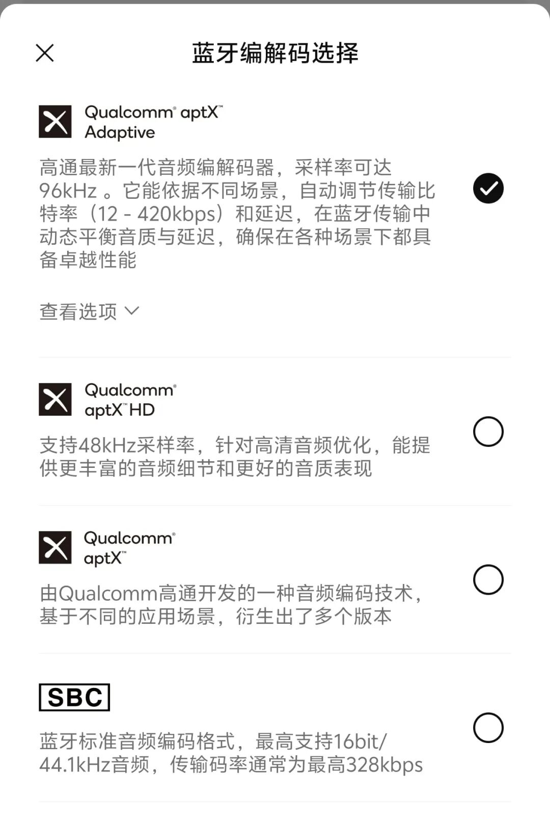 不同的耳机对无线传输协议的支持情况各不相同。比如 我手上的Bose QC Ultra II TWS 支持 SBC、AAC、aptX Adaptive;Sony WH-1000XM5 支持 SBC、AAC、LDAC;Sony WF-1000XM6 支持 SBC、AAC、LDAC;Shure SE846 + TW2 无线套装支持 SBC、AAC、aptX、aptX HD、aptX Adaptive。