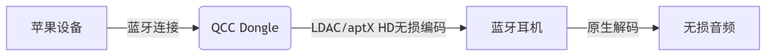 其核心原理在于,QCC Dongle 在iOS系统内被识别为 USB-C 外接蓝牙发射器,能够绕过苹果系统自带的蓝牙协议栈。内置的高通 Snapdragon Sound 平台,也可以直接与支持 aptX Adaptive /aptX Lossless 的耳机通信。意味着当苹果设备接入QCC Dongle,掐住洪荒之力的大闸就轻而易举的被释放了。