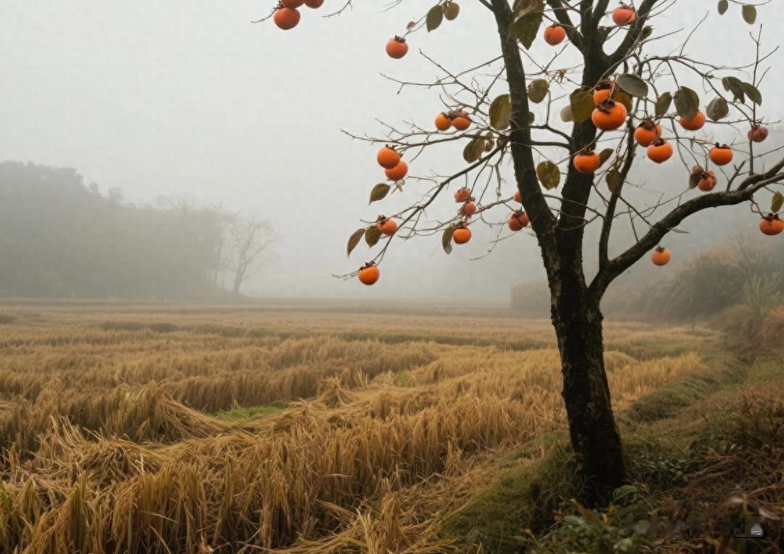 在早冬,往往是在农历十月左右,此时北方黄河流域,会出现繁霜,和零星小雪,温度虽然低,但是并不十分萧条,稻谷归仓,柿子成熟,正是农民们忙碌庆祝丰收之时。