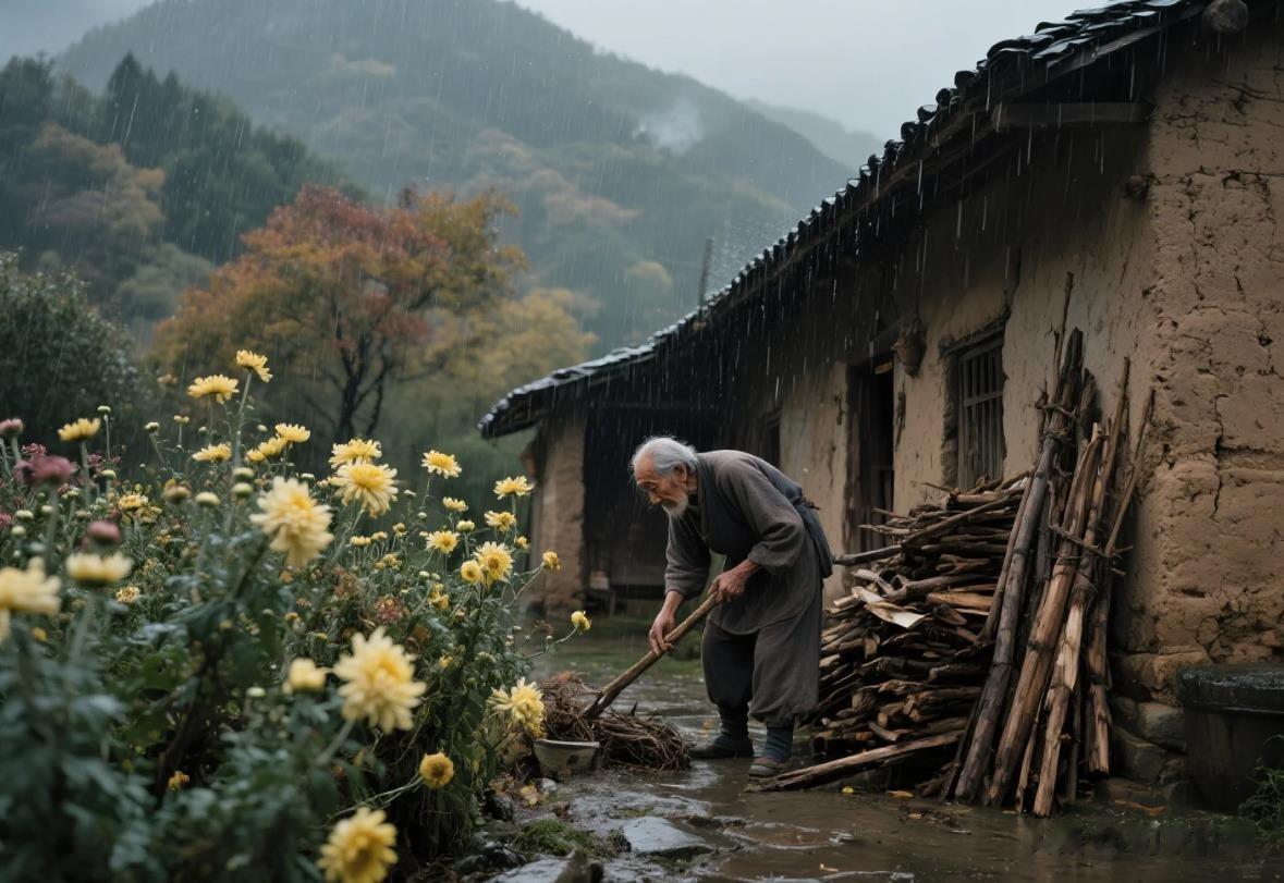 山风撼动着一切,只有庭院里种植的菊花,依然芬芳。