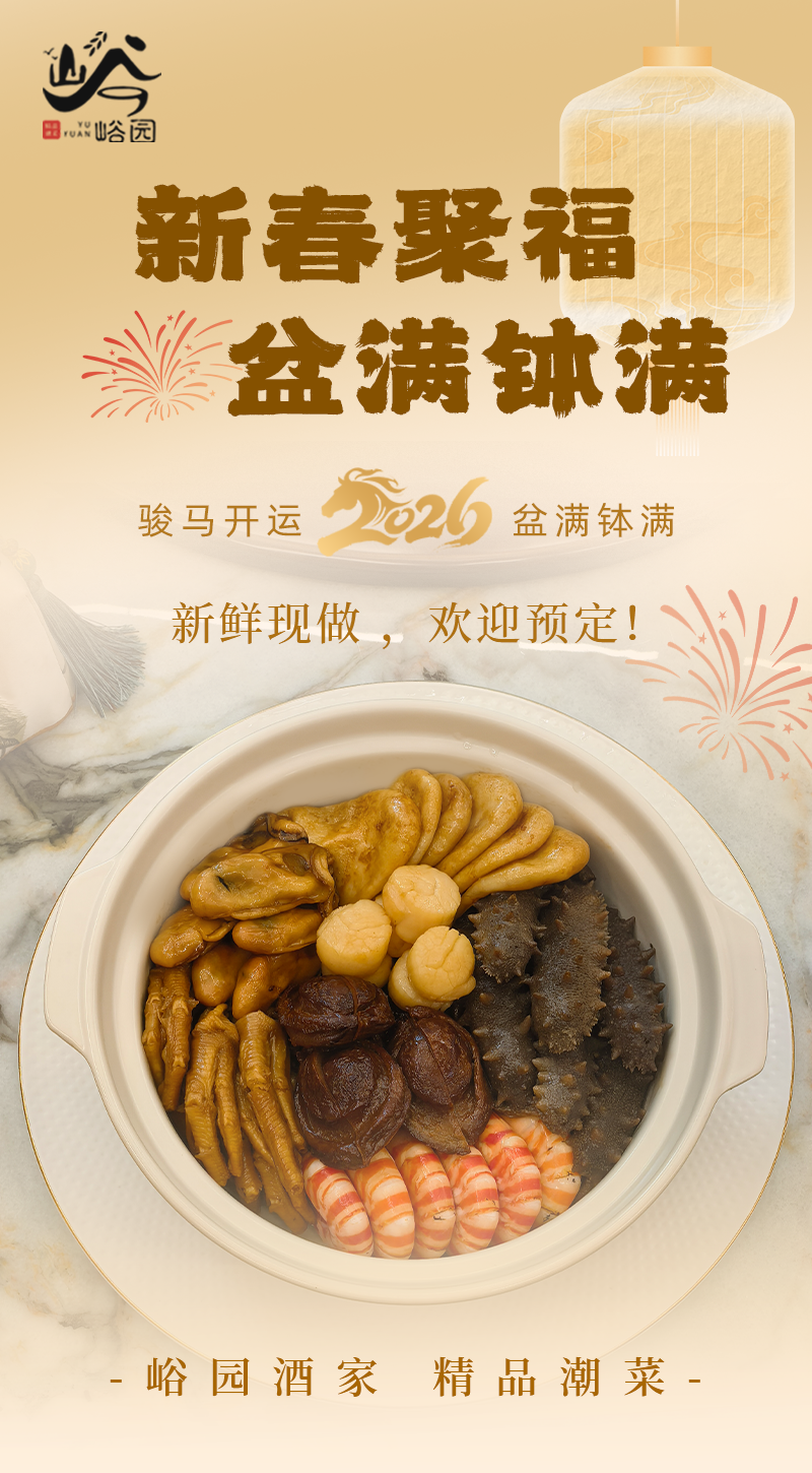 当最后一口浓香醇厚的汁料伴着米饭下肚,满足感与暖意油然而生,象征着过去一年的丰硕成果与来年的盆满钵满。这个新春,在峪园,以一品山海盆菜,启封岁序的圆满之味,为您重要的商务关系,写下充满福运与希冀的崭新一页。
