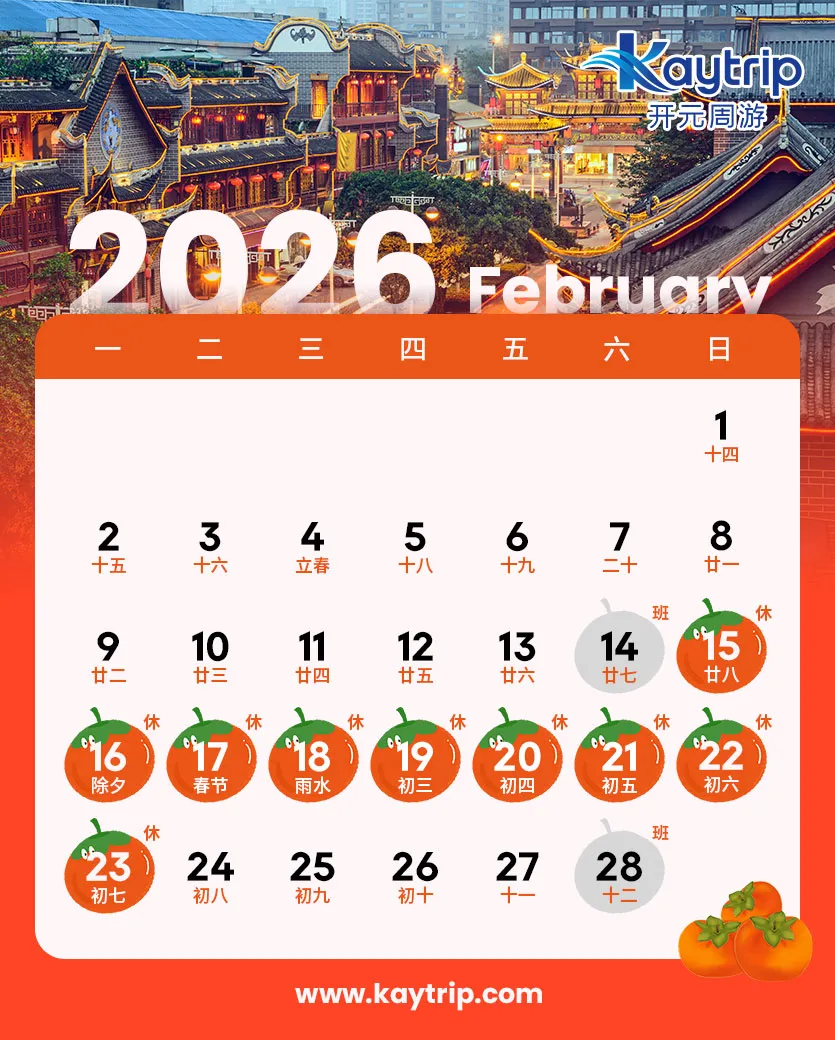 2026年的春节假期安排终于出炉!从2月15日到23日,整整9天的连休,再加上节后只需请假5天,就能拼出15天的超长假期。这么充裕的时间,不规划一场说走就走的旅行,实在太可惜了!