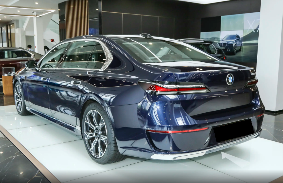 定位于大型车的宝马7系车身尺寸略显夸张,车身长度5391mm,轴距3215mm,车身长度比S级还要长101mm,尺寸介于S级和迈巴赫S级之间,车身侧面形态相当具有行政范儿。相比于前脸,宝马7系的车尾造型就要简单不少了,尾灯造型依旧很犀利,内部结构精致时尚,点亮之后更有气势。尾箱开关被单独设计在尾门中间位置,如果将这一将功能与车标进行融合,是不是会更好一些呢?宝马7系的门把手采用内嵌式设计,手伸进去之后就会发现内部有一个电控开关,轻轻一按车门就会打开,一方面降低风阻系数,另一方面更好保障了安全性能。