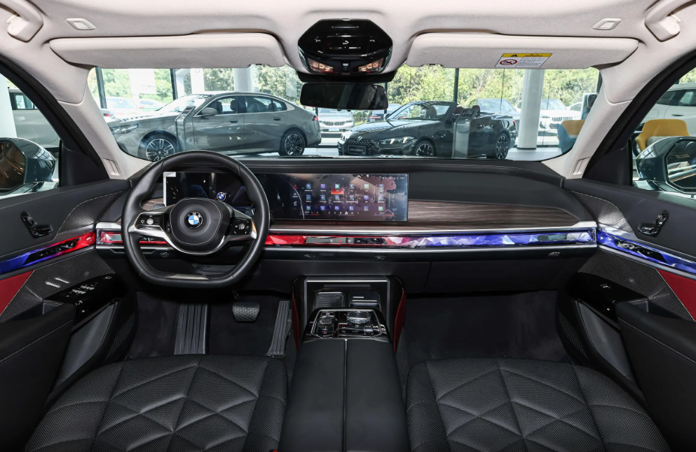 坐进车内,只需轻点刹车,车门就会自动关闭,除此之外还有多种关门方式,不过自动开合门只有顶配车型才有,低配车型不支持选装,中配需要花14400元选装。内饰设计的灵感来源于水晶切割,车内很多位置都运用了水晶材质,当然最显眼的还是中控台上的水晶交互灯带,点亮之后给人一种低调奢华的感觉。仪表盘和中控屏组成当前流行的悬浮大屏设计,内置iDrive 8操作系统,配备8155P芯片,操控流畅度还是很不错的,内部集成丰富科技功能,基本属于市面上主流水平。