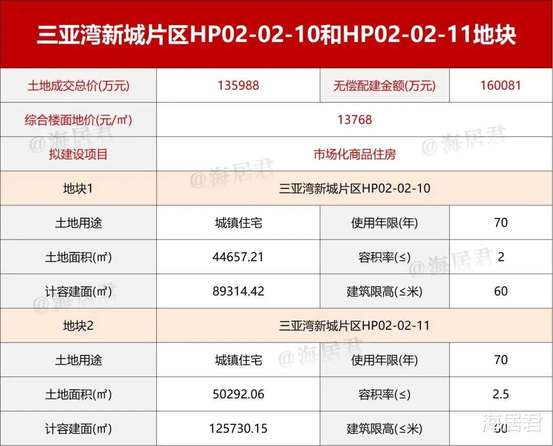 刚刚,三亚结束了三亚湾新城片区HP02-02-10、HP02-02-11两幅合宗地块拍卖,最终顺利决出最高出价者,为中国绿发旗下海南绿发投资有限公司。