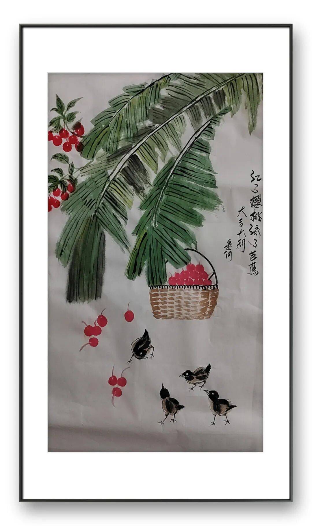 邹景河的花鸟画同样别具匠心。他的花鸟作品不追求繁复的色彩堆砌,而是以 “简约传神” 为核心,着重捕捉花鸟的灵动之态与内在神韵。他的花鸟创作并非局限于对物象的写实描绘,更注重通过笔墨传递情感与哲思,让每一幅作品都成为创作者精神世界的投射,引发观者的情感共鸣。