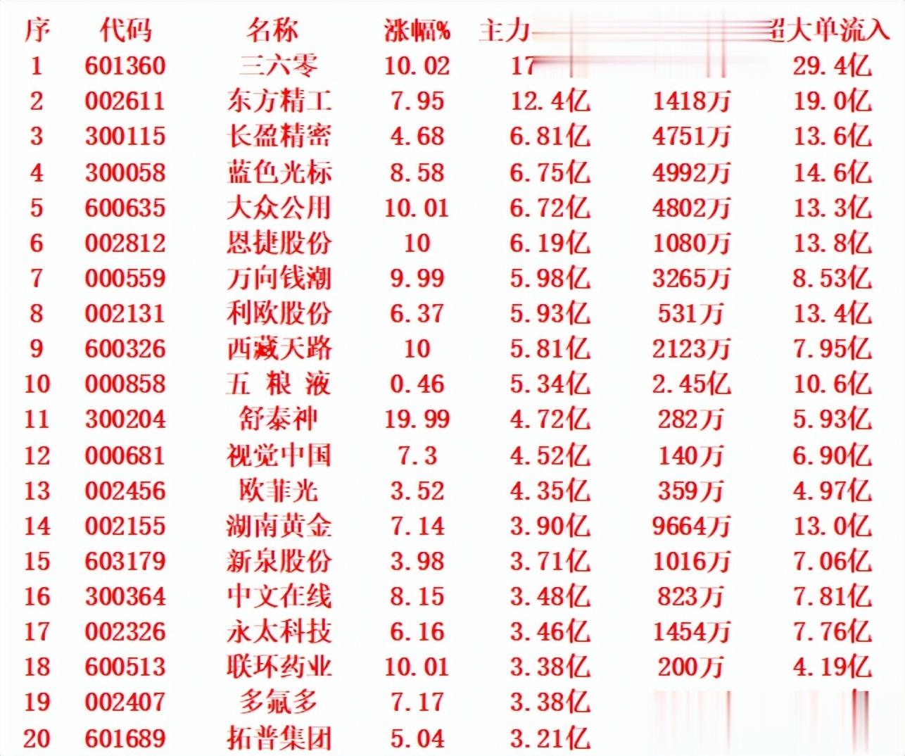 序 代码 名称 涨幅%