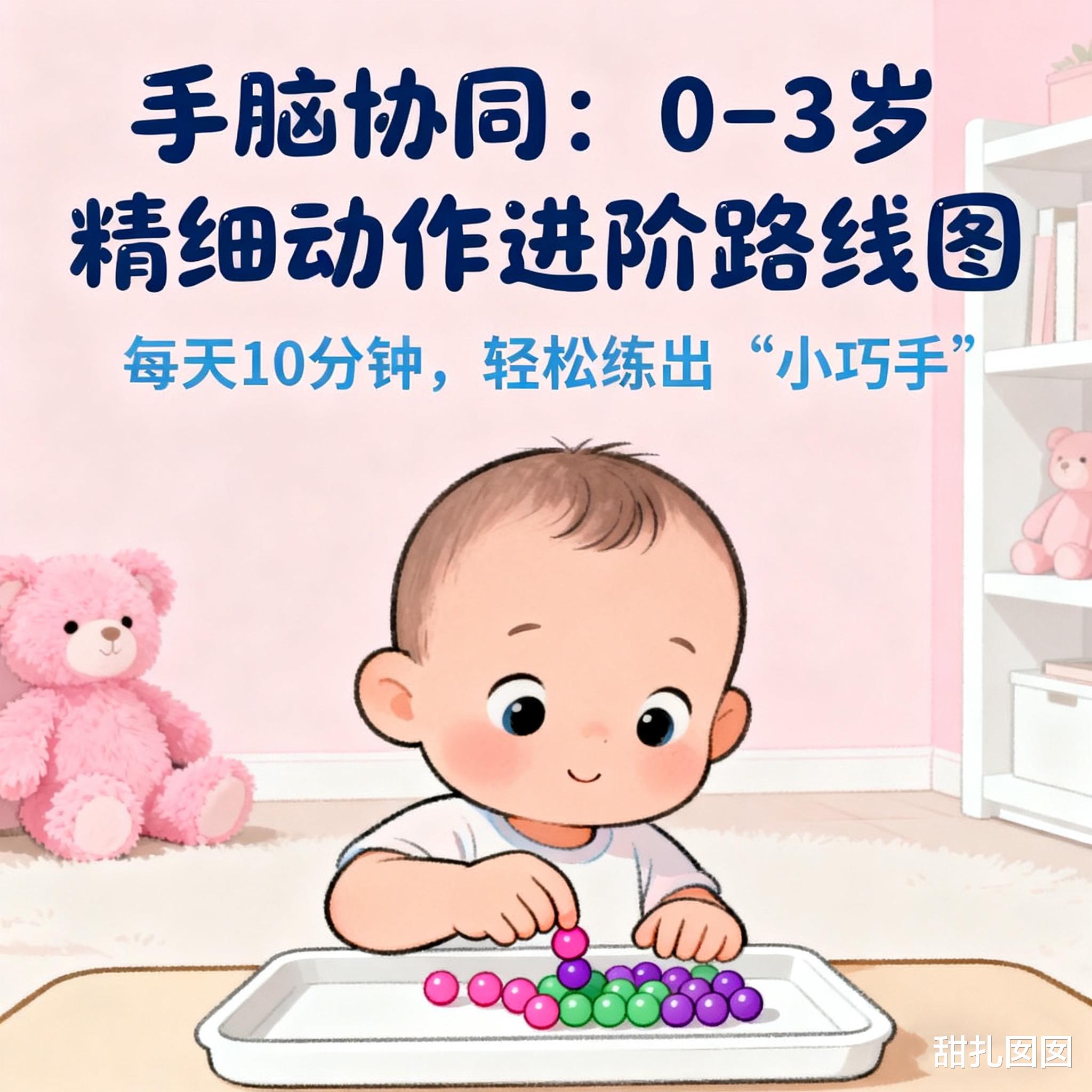 哈佛大学儿童发展中心追踪发现:婴幼儿每完成一次“捏、拧、插、拔”等精准动作,大脑突触就会新增约700条神经连接。换句话说,手指是大脑的“遥控器”,越早灵活,后期语言、专注、逻辑思维越占优势。可惜,很多家长把“精细动作”简单等同于“串珠、画画”,结果孩子三分钟热度,家长也焦虑。今天这篇,给你一份“0-3岁分阶段实操路线图”,全部取材家里现成物品,每天只要10分钟,坚持一个月,你就能看到肉眼可见的变化。