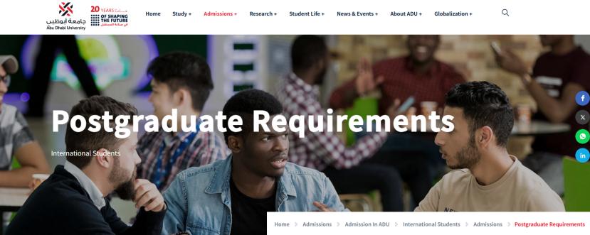 (2)申请文书及材料:简历;成绩单和课程大纲;两封推荐信;对于毕业于阿联酋以外大学的申请人,需提供阿联酋教育部出具的学历认证函原件,以及经认证的学士学位证书和成绩单复印件。