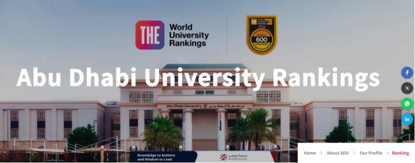 根据2025年泰晤士高等教育世界大学排名显示,阿布扎比大学位列阿联酋国内前3位,亚洲第70位。ADU在阿联酋的教学和毕业生就业能力方面排名第1。