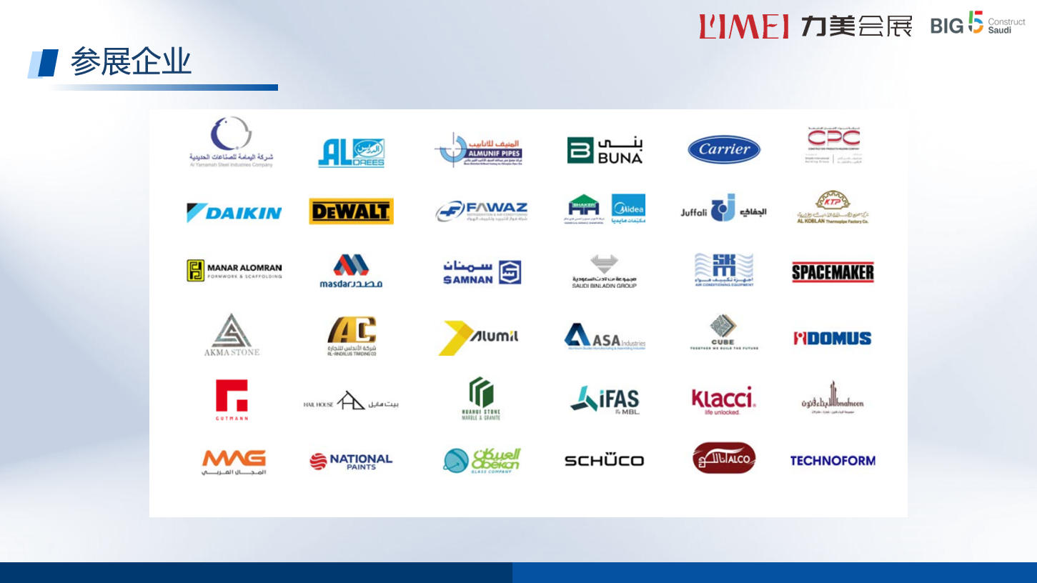 沙特政府每年超 200 亿美元的建材采购需求,是国内建材企业出海的 “富矿”,而 BIG5 中国专区与力美的直连通道,为企业提供了 “敲门砖”。借力美的政府资源对接、合规指导、本地化背书,企业可高效获取政府订单,打通长期出海门路。作为中沙会展领域的领军者,力美会展已成功助力逾1200家中国企业亮相沙特Big5系列展会,并以65%的客户重复参展率,印证了我们卓越的服务价值。