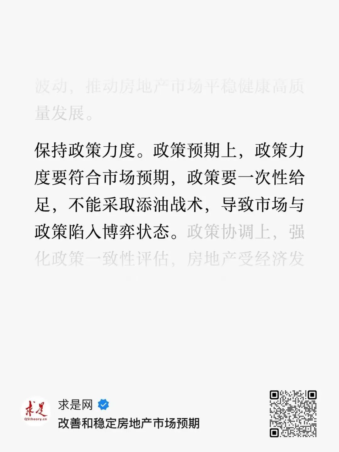 二是明确提出:“政策要一次性给足,不能采取添油战术,导致市场与政策陷入博弈状态”。