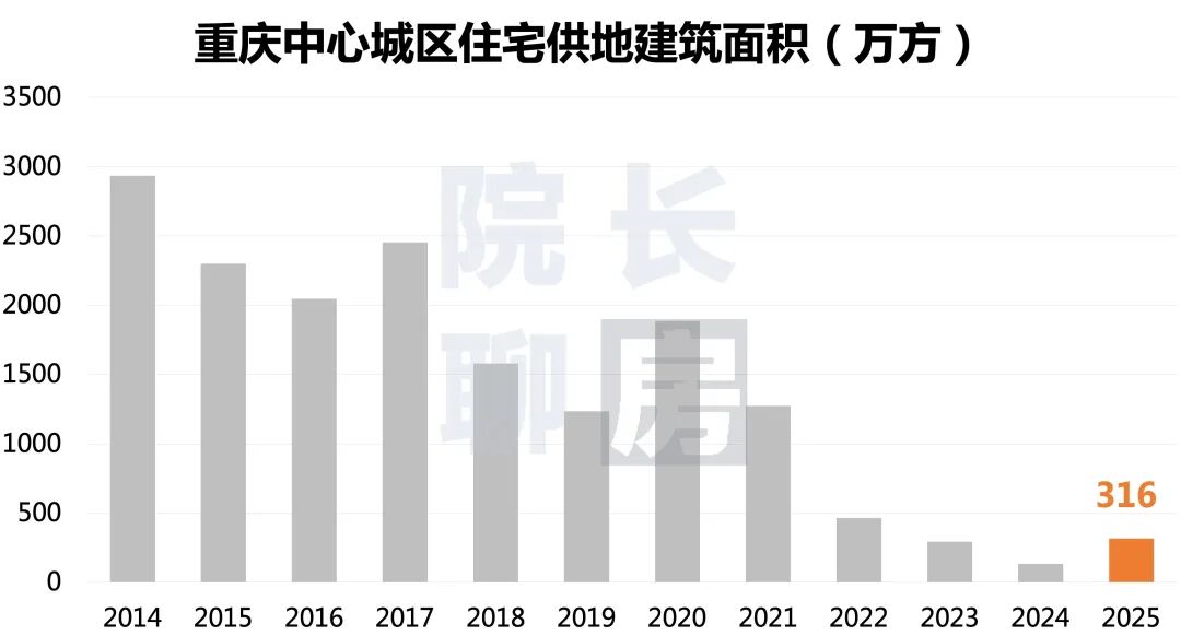 但根据重庆锐理机构统计数据,在2025年重庆的住宅用地成交建筑面积却回升至316万方,大幅增长1.3倍。