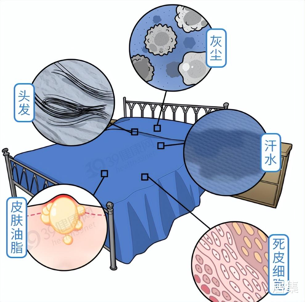 而尘螨就是严重的过敏原,它是我们肉眼看不到的微生物,很喜欢在床铺上滋生,