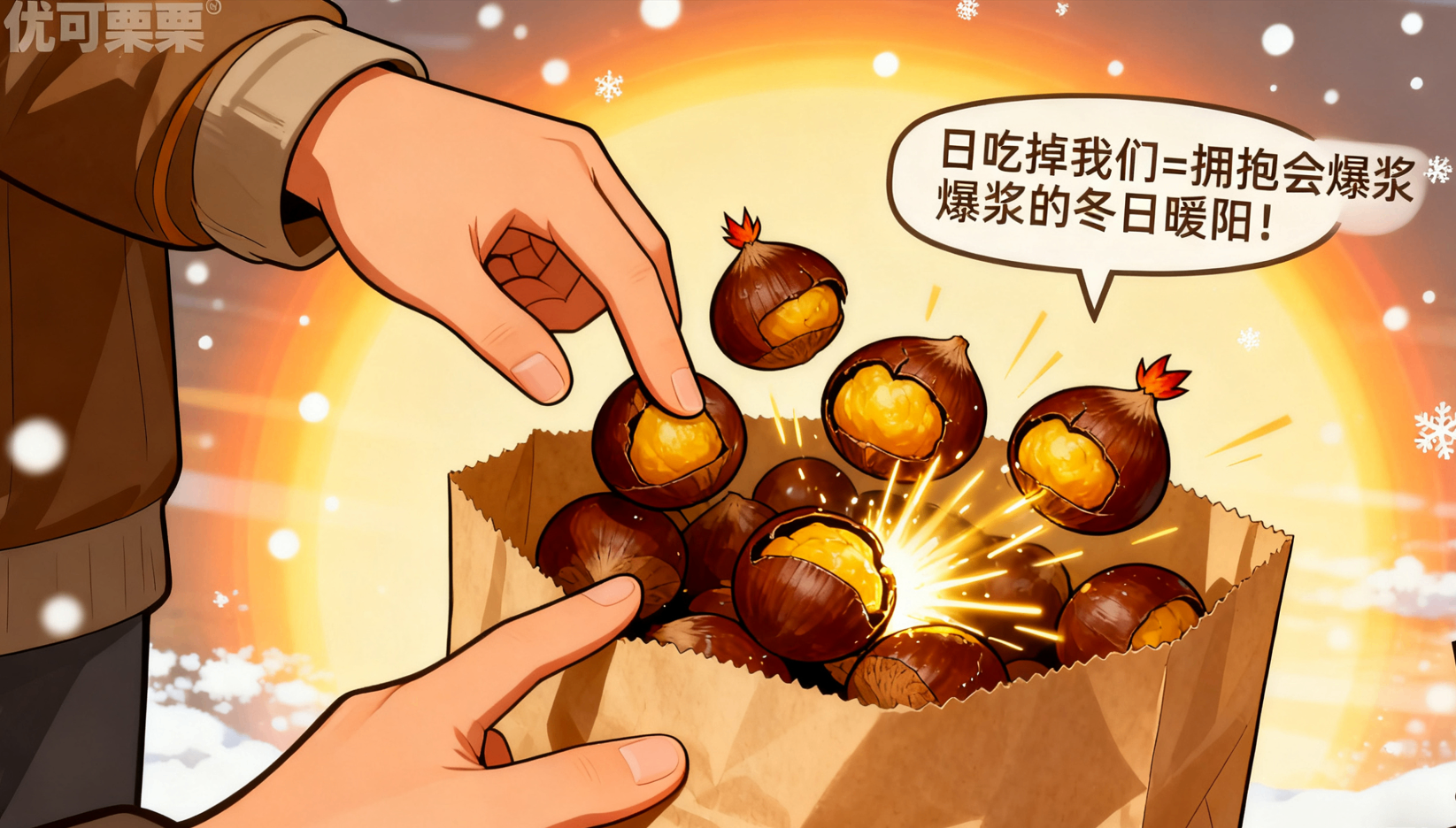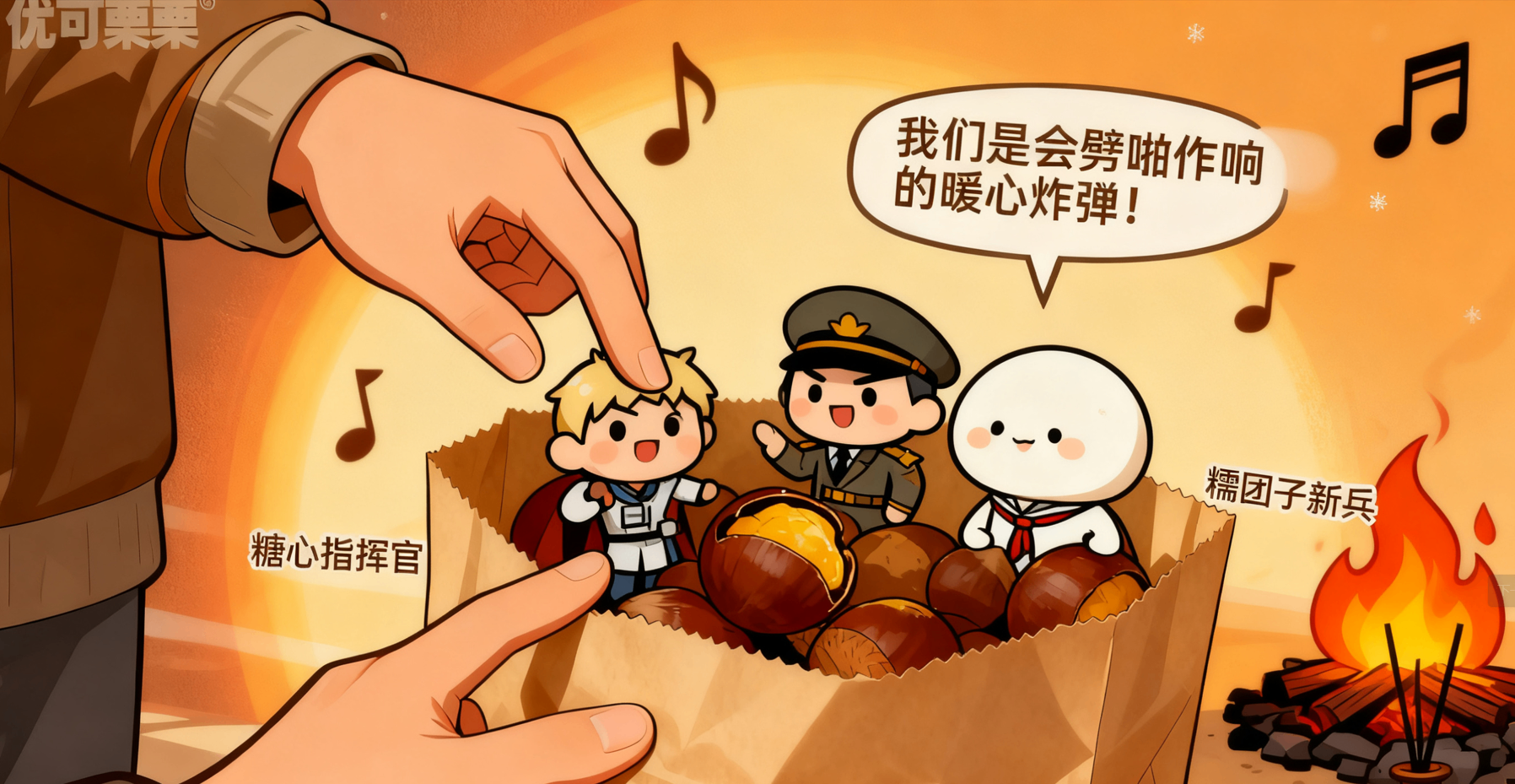 用这样的炭火童话,让现烤板栗在寒风中举起小喇叭:“我们是会劈啪作响的暖心炸弹!”