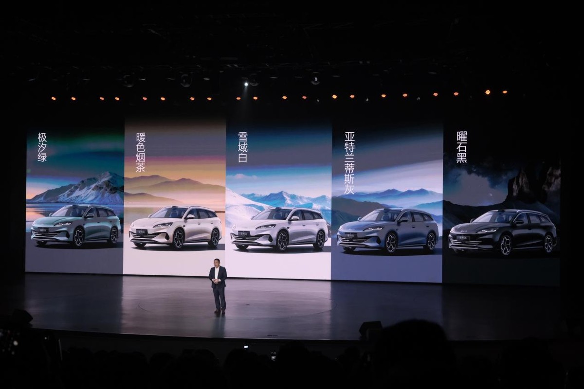 产品部分,新款海豹06外观变化不大,主要体现在配置升级,纯电版(GT)和DM-i重新设计了车漆颜色,审美更趋向于年轻用户,新增配色还施行限时全部免费送。纯电版还配备了一个66L超大前备箱,支持电动开启。另外,新车作为一款旅行版车型,后备箱空间明显加大,后排头部空间也有所增加,实用性更突出。
