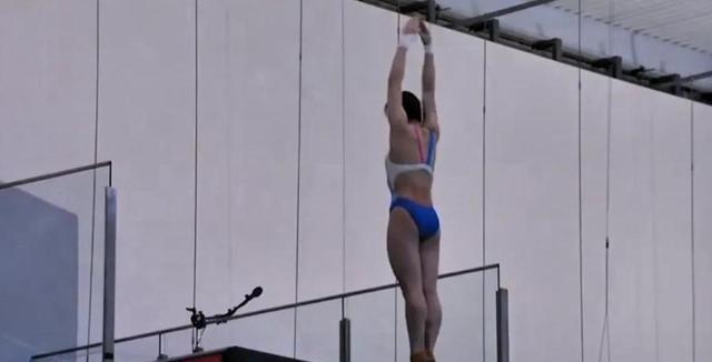 在臂立动作上,全红婵选择了较为简单的6243D,看来全妹这回也是长记性了,为了保险起见还是不轻易尝试那么多有难度性的动作。