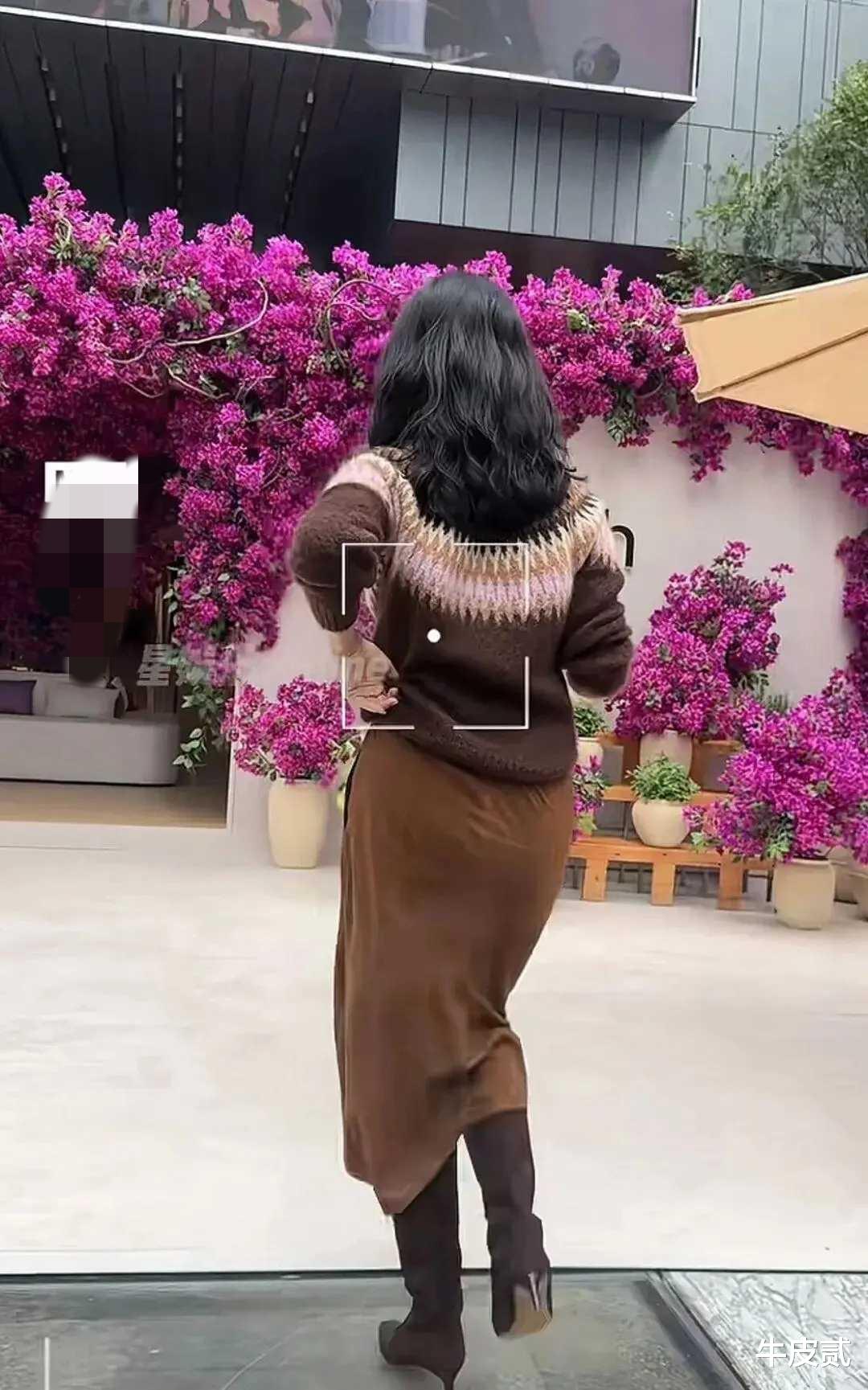 尤其值得一提的是,即便刚经历生育,她的臀部线条依旧饱满挺翘,在呢子裙的包裹下勾勒出成熟丰盈的曲线,为整体造型平添一抹健康性感的韵味。