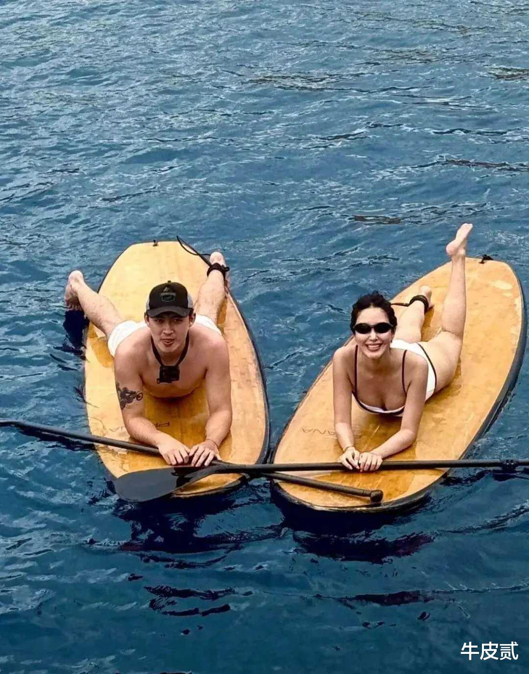 比如,两人穿着清凉去划水。
