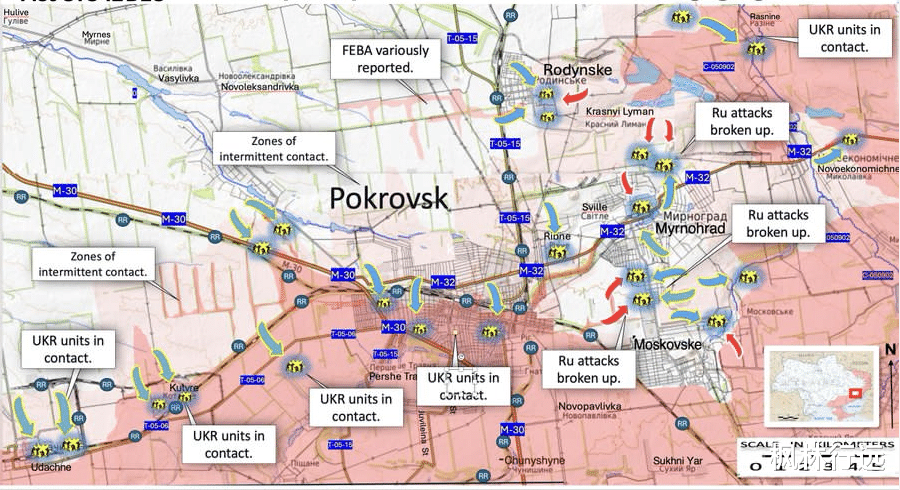 波克罗夫斯克方向,俄罗斯攻击部队在铁路线以南地区加强了小单位战术的运用。换句话说,他们如今并没有完全控制铁路线以南的城区。