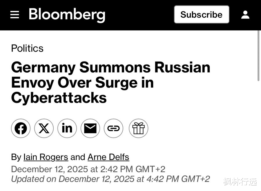 据彭博社报道,德国外交部召见了俄罗斯大使,并表示莫斯科政府支持的旨在破坏民主的混合攻击将招致后果。