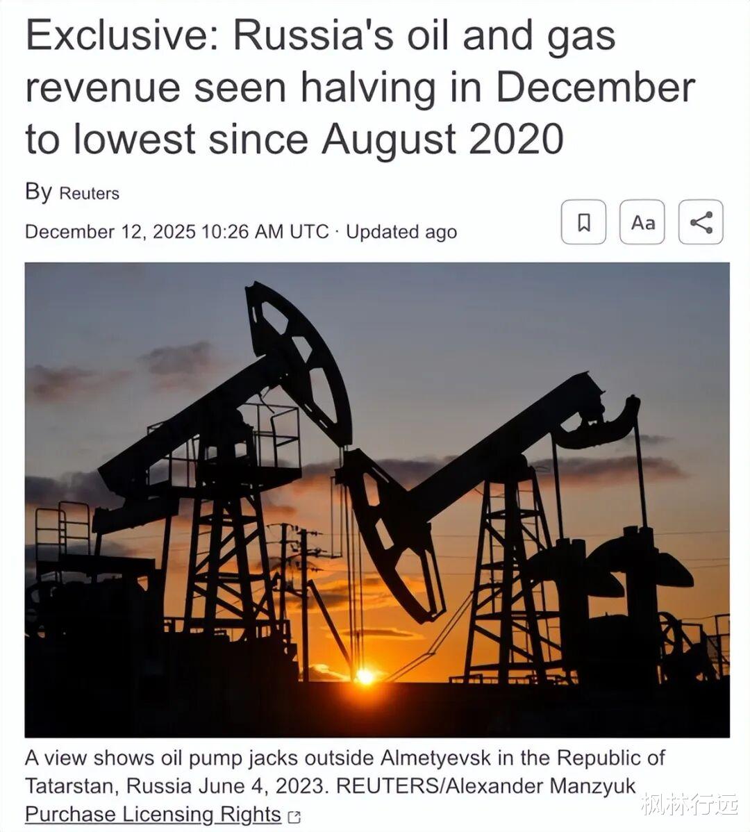 据路透社的消息,由于原油价格下跌以及卢布走强,俄罗斯国有油气收入在 12 月可能较一年前几乎减少一半,降至 4100 亿卢布(约合 51.7 亿美元)。