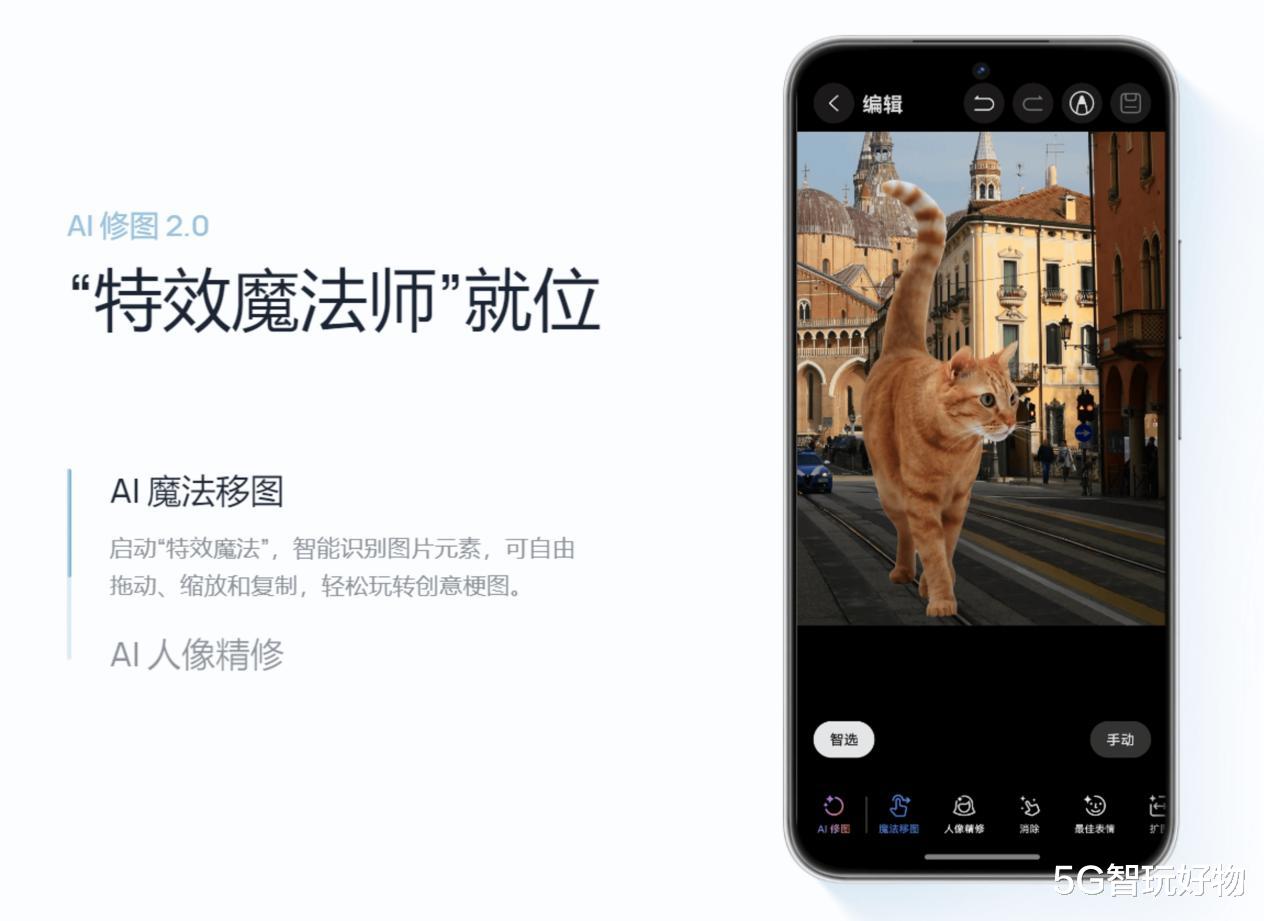 除了忠实记录,影像的乐趣更在于无限的创意。华为nova 14系列搭载的AI魔法移图功能,便为用户打开了创意的新大门。你可以轻松将钓到的小鱼“变”成大鱼,或者将合照中略有距离的朋友拉得更近,甚至可以发挥想象力,实现隔空投篮、与地标建筑进行创意互动等趣味玩法,让每一张照片都成为独一无二的社交分享素材。